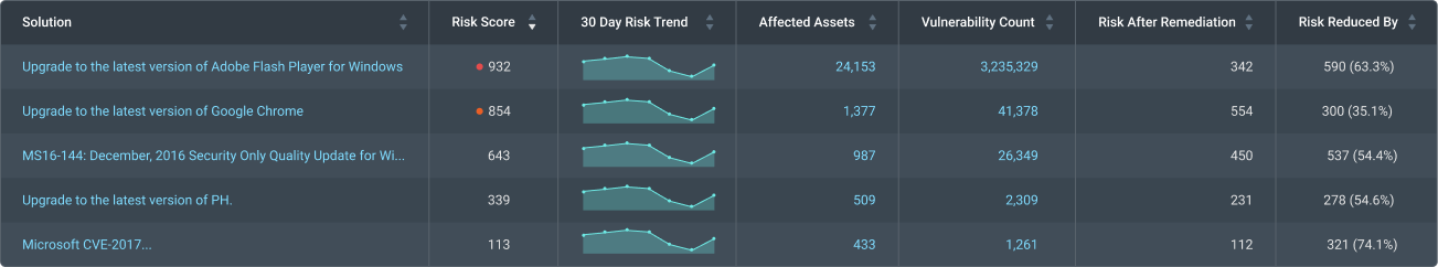 Remediation solution table with updated risk info + cross-linking