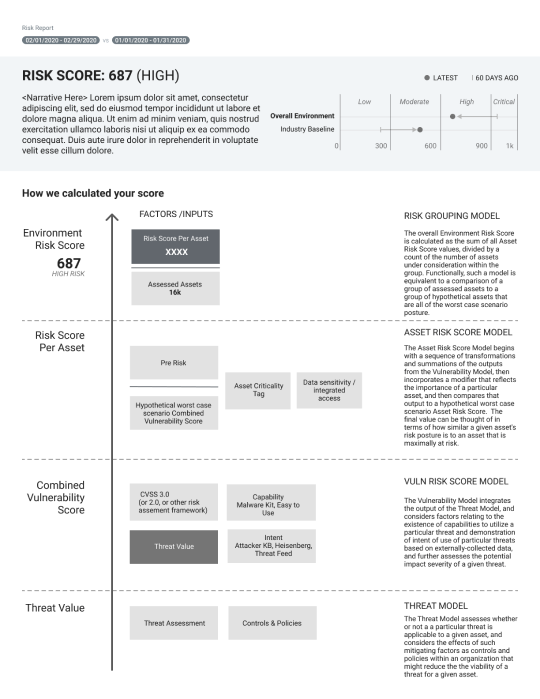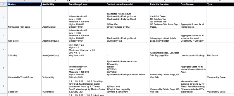 We needed be mindful on how the new risk model would impact these instances. For the initial scope, we decided to not focus on the industry benchmarking(but have a general idea of how this would look like). The basis of the project is the explanation around the risk score itself. Also the emphasis around current available data in InsightVM. The business wanted to make incremental improvements vs a complete lift and shift.